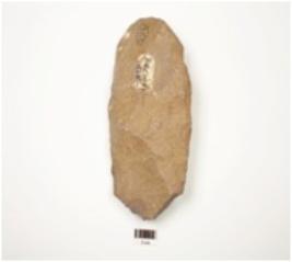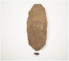 | Description / विवरण | A cleaver made on quartzite end struck flake with flake scars on both sides, longitudinal sides, slightly chipped off along broad cutting edge and lenticular cross section. |