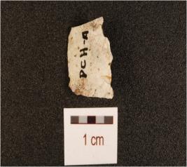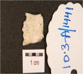 | Description / विवरण | Fragment of chert blade, use-wear marks along the cutting edge and triangular cross section. |