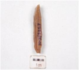| Description / विवरण | A chert blade with trapezoidal cross section, prepared platform, use-wear marks along the cutting edge and prominent bulb on ventral side. |