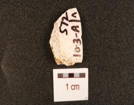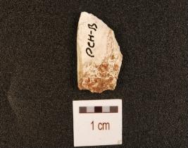 | Description / विवरण | Flake made on chert, prepared platform, prominent bulb and flake scars on the surface. |