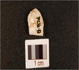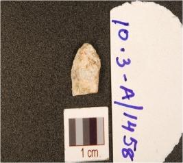 | Description / विवरण | A flake made on chert, has double ridge, three flake scars on surface, irregular edges and prepared platform. |