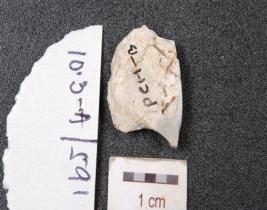 | Description / विवरण | An end struck chert flake, prepared platform and diffused bulb on ventral side. |