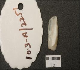 | Description / विवरण | Blade made on chert, blade scars on the surface and use-wear marks on the working edges. |