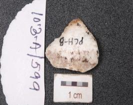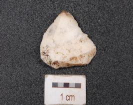 | Description / विवरण | An utilized flake, made on end struck chert, prepared platfrom, prominent bulb on ventral side and use-wear marks along sharp edge. |