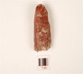 | Description / विवरण | A chert core with seven blade scars and flake scars on surface. |