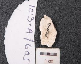 | Description / विवरण | A side struck chalcedony flake, prepared platform and prominent bulb on one side. |