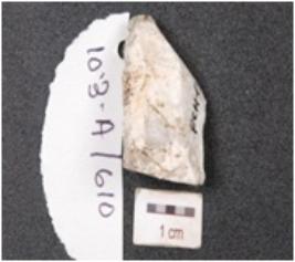 | Description / विवरण | A chert flake, bulb platform absent and cortex on dorsal side. |