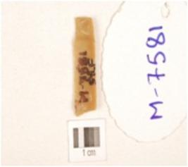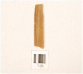 | Description / विवरण | A parallel sided chert blade with double ridge on dorsal, trapezoidal cross-section and use-wear marks on cutting edge, broken both ends. |
