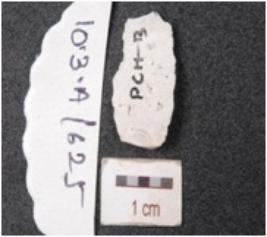 | Description / विवरण | A blade made on chert, prepared platform, diffused bulb on ventral side, ridge on dorsal side and use-wear marks along cutting edges. |