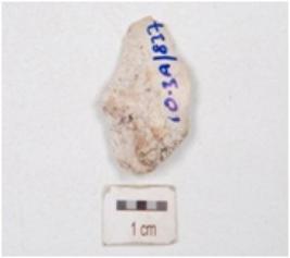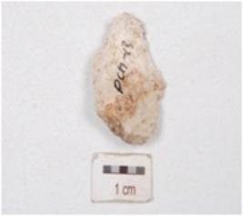 | Description / विवरण | A flake made on chert, ridge on dorsal surface, irregualr edges and prominent bulb on ventral surface. |