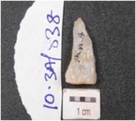 | Description / विवरण | A flake made on quartz prepared platform and irregular edges and surface. |