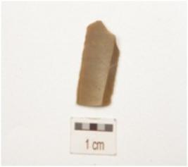 | Description / विवरण | Fragment of a blade, made on chert, previous blade scar on dorsal side, detached from a unprepared core, bulb absent on ventral side, triangular in section and broken along distal end and use-wear marks along both cutting edges. |