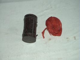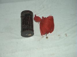 | Description / विवरण | It is a Kalgi and an iron box. The kalgi is worn on the turbans and it is made of red feather. |