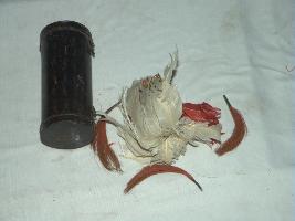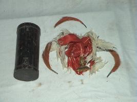 | Description / विवरण | It is a Kalgi and an iron box. The kalgi is worn on the turbans and it is made of feather and copper with a golden polish. |