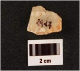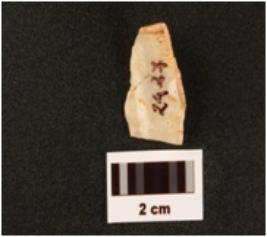 | Description / विवरण | A blade flake made on agate. Prepared plat form on proxcimad end. Distal end is broken cortex preel on sorsal side and ripple marks on winterd side and bulb is absent. |