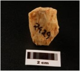 | Description / विवरण | A stone core made on quartz. The stone is modified, prepored platform. Flake scars on surface, and irregular in shape. |
