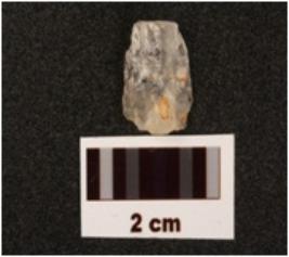 | Description / विवरण | Fragment of a blade made on quartz, use-wear along cutting edges, ridge on a dorsal side, prominent bulb on ventral side, broken along distal end, triangular in section. |
