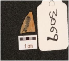 | Description / विवरण | Flake made on quartz with use-wear marks along cutting edge, diffused bulb on ventral side, side ridge on dorsal side, prepared platform, triangula in section. |