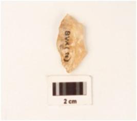 | Description / विवरण | A flake made on quartz, irregular in shape and uneven surface, use wear marks on edges. |