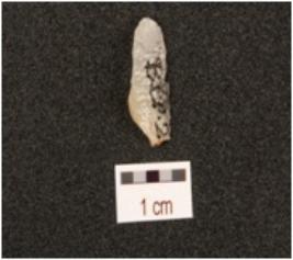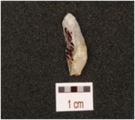 | Description / विवरण | A flake made on quartz, uneven dorsal side, absent bulb on ventral side, distal end is pointed. |