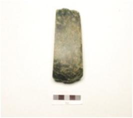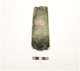 | Description / विवरण | Fragment of a celt made on stone smoothly polished surface with one sharp working end and rectangular cross section. |