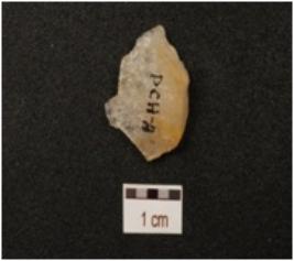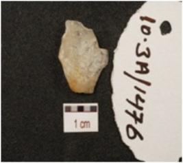 | Description / विवरण | A flake made of quartz, prepared platform, broken from distal end, blade scars on dorsal and smooth surface. |