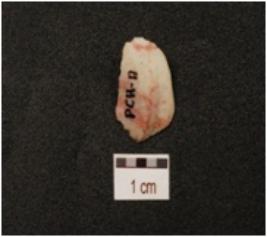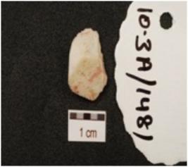 | Description / विवरण | A flake made of chalcedony, blade scars on dorsal side and sharp cutting edge. |