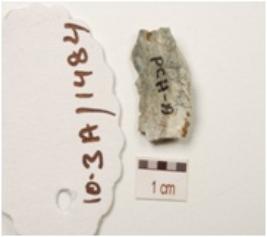 | Description / विवरण | A flake made of chert, blade scars on dorsal side, prominent bulb on ventral side, broken from distal end and use wear marks along cutting edge. |
