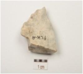 | Description / विवरण | End struck chert flake with wear marks along cutting edge, chipping and dorsal surface and positive bulb on ventral. |