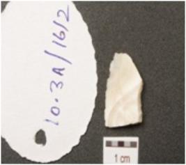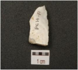 | Description / विवरण | Utilized flake made end struck chert flake, prominent bulb on ventral flake scars on dorsal and wear marks along cutting edge. |