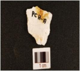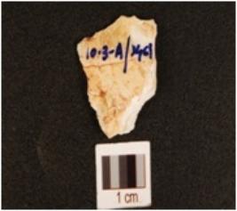| Description / विवरण | A flake made of chert, with irregular edges. |