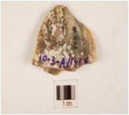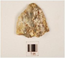 | Description / विवरण | A flake made of chert, single ridge, irregular edges and flake scars. |