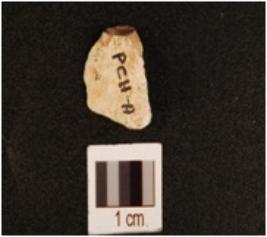 | Description / विवरण | A flake made of chert, single ridge two flake scars and prepared platform. |