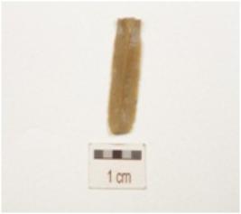| Description / विवरण | Fragment of a blade, made on chert, ridge on dorsal side, prepared platform, broken along distal end, diffused bulb on ventral side, ittailure on the bulb, triangular in section and use-wear marks along the cutting edge. |