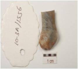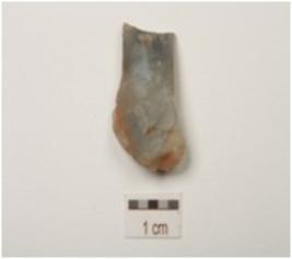 | Description / विवरण | A chalcedony flake core with flake scars and cortex on the surface and prepared platform on the proximal end. |