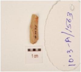 | Description / विवरण | A blade made of chert, has single ridge with flake scars, prepared platform and diffused bulb on ventral. |