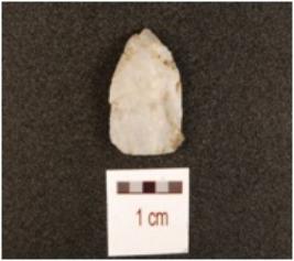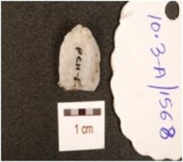 | Description / विवरण | A flake made of chalcedony, has single ridge with flake scars on dorsal and use marks on edges. |