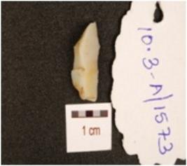 | Description / विवरण | A flake made of chalcedony with a pointed end. |