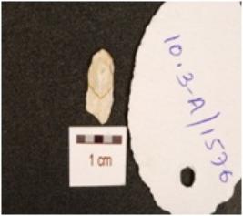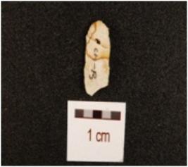 | Description / विवरण | A blade made of chert mid-ridge with flake scars on dorsal and irregular edges. |