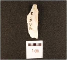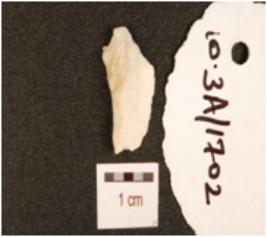 | Description / विवरण | Fragment of chert blade with prominent mid-ridge on dorsal, use-wear marks on cutting edge and triangular cross-section. |