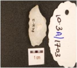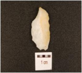 | Description / विवरण | A quartz utilized flake with flake scars, cortex on dorsal and use-wear marks on edge. |