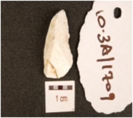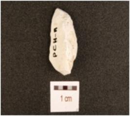 | Description / विवरण | Fragment of chert blade, flake scars on dorsal, prepared platform and diffused bulb. |