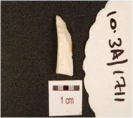 | Description / विवरण | A blunted blade made of agate, ridge on dorsal and broken along proximal end. |