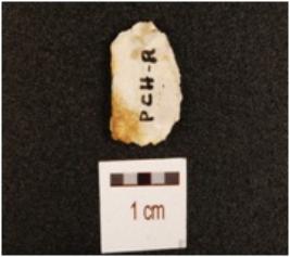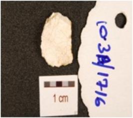 | Description / विवरण | Fragment of chert blade with prominent mid ridge on dorsal, triangular cross-section and use wear marks on cutting edge. |