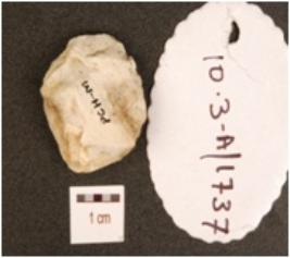 | Description / विवरण | A core made of chert, having flake scars on surface and irregular edges. |