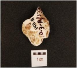 | Description / विवरण | A core made of chert, having flake scars on surface and irregular edges. |