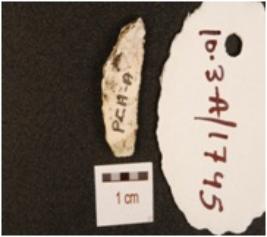 | Description / विवरण | A knife blade made of chert, two ridge on dorsal irregular edges and difused bulb on ventral surface. |