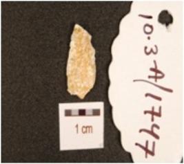 | Description / विवरण | A knife blade made of chert, mid-ridge on dorsal irregular edges and prominent bulb on ventral. |