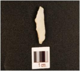 | Description / विवरण | A knife blade made on chert, ridges on dorsal surface, irregular edges and difused bulb on ventral surface. |