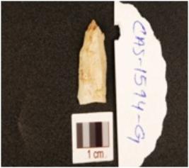 | Description / विवरण | A knife blade made on chert, two-ridges on dorsal surface, irregular edges and difused bulb on ventral surface. |